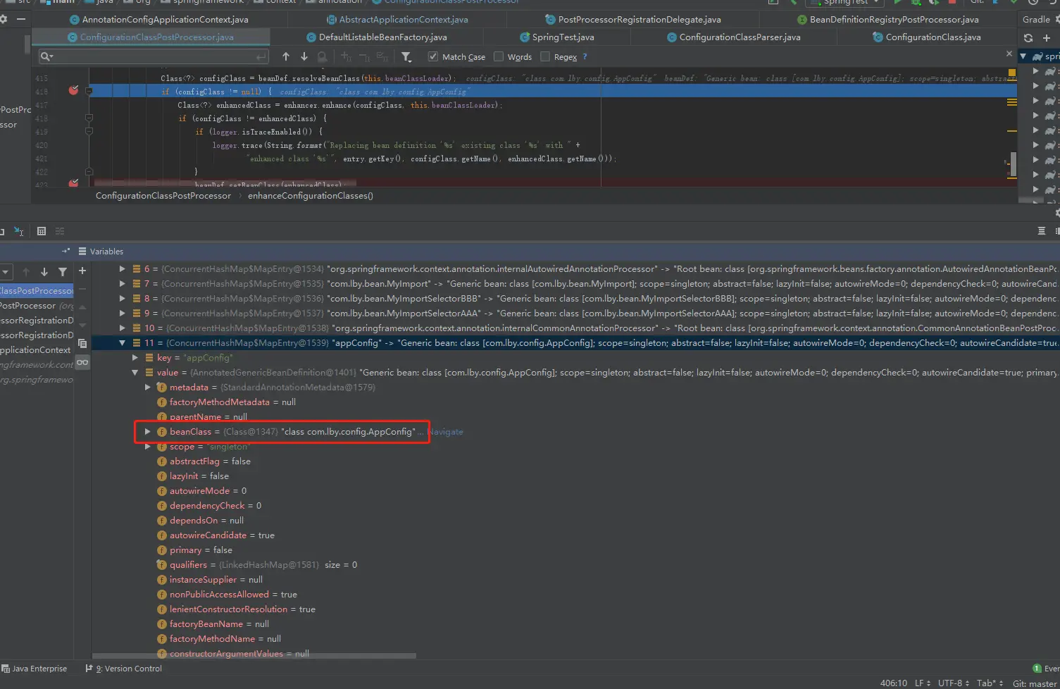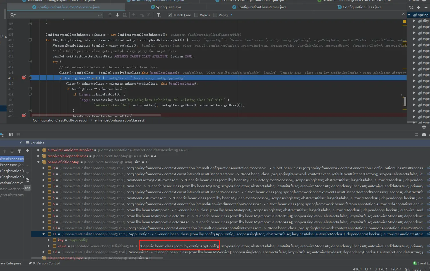 我们的第二步:Bean的解析,到这里算是结束。总结下,核心类是ConfigurationClassPostProcessor,这个后置处理器为我们解析了Bean,实际的解析逻辑我也是似懂非懂,即便如此也能大致了解Bean的解析过程以及Full类型的bean是使用cglib动态代理等实现。到此为止,我们定义的Bean还没有实例化,只是被解析成BeanDefinition存储在BeanFactory中。