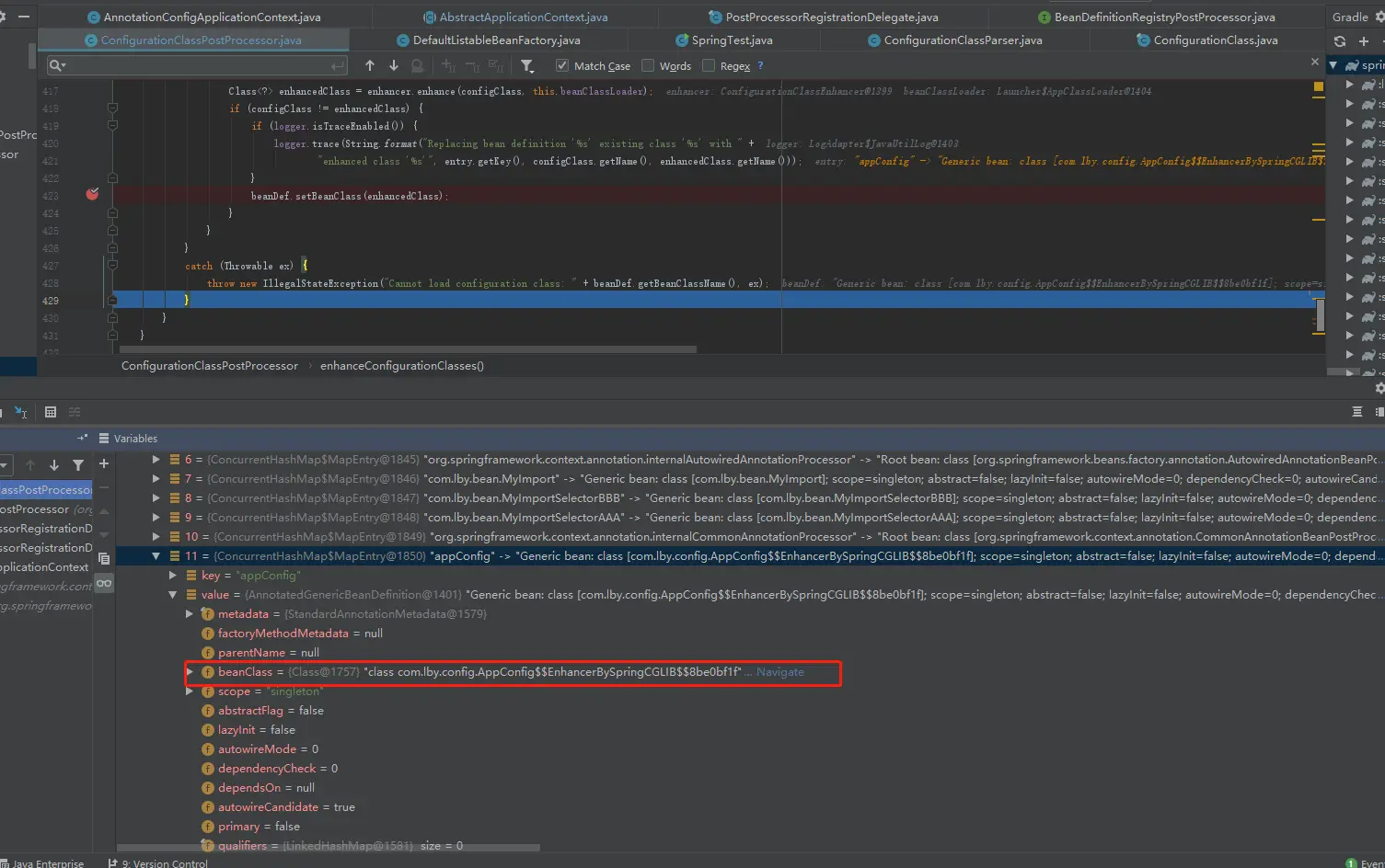 // 说一下BeanPostProcessor的注册,前面的某些环节会加一些BeanPostProcessors