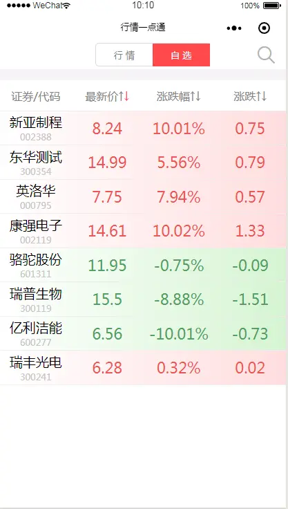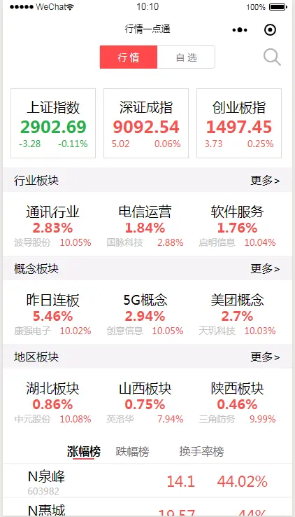 本小程序定位在A股行情展示,功能包含查看个股行情、板块、排行以及自选股功能,基本功能截图如下: