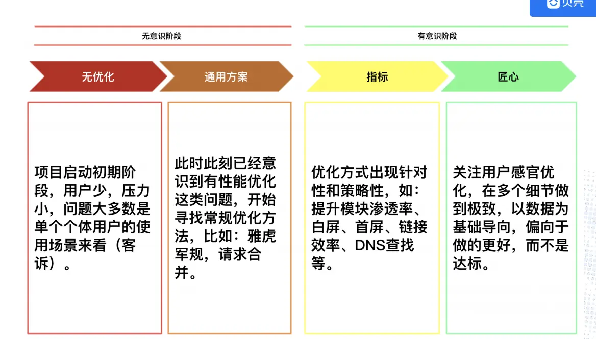 - 目标:主要是性能优化的数据理想状态,以及优化方案制定的主要因素