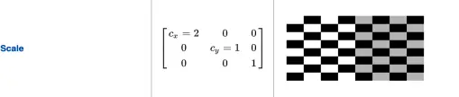 当图形经过一系列平移、旋转、缩放等操作后,再去计算图形的最终位置是一件有些复杂的事,好在图形学中对这些基本图形变换已经有较为成熟的算法。例如缩放,就可以用下面的矩阵来表示:
