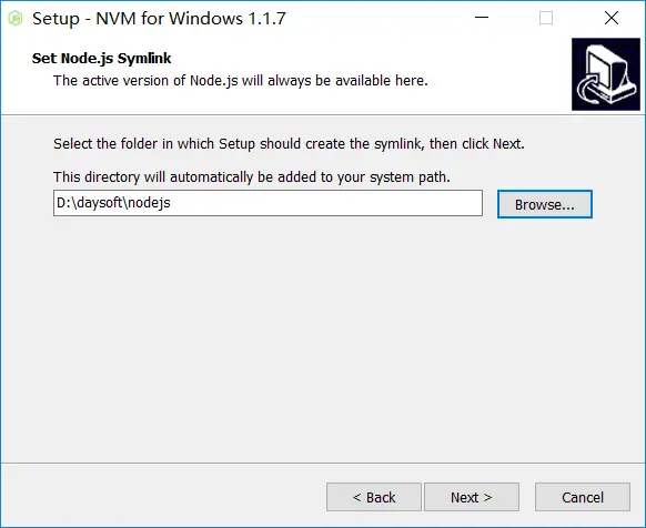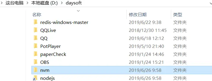 - 在某一盘符路径下(注意不要有中文和空格)新建两个文件夹(nvm和nodejs)用以保存nvm和正在使用的node环境(其实这是一个快捷方式,指向nvm内的node,个人理解原理是nvm的一个指针指向nvm管理的node),本人配置
