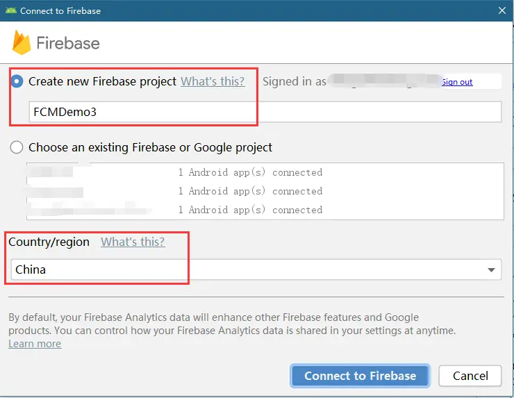 - 在第1步中,我们需要在Firebase新建一个项目,同时选择国家地区。