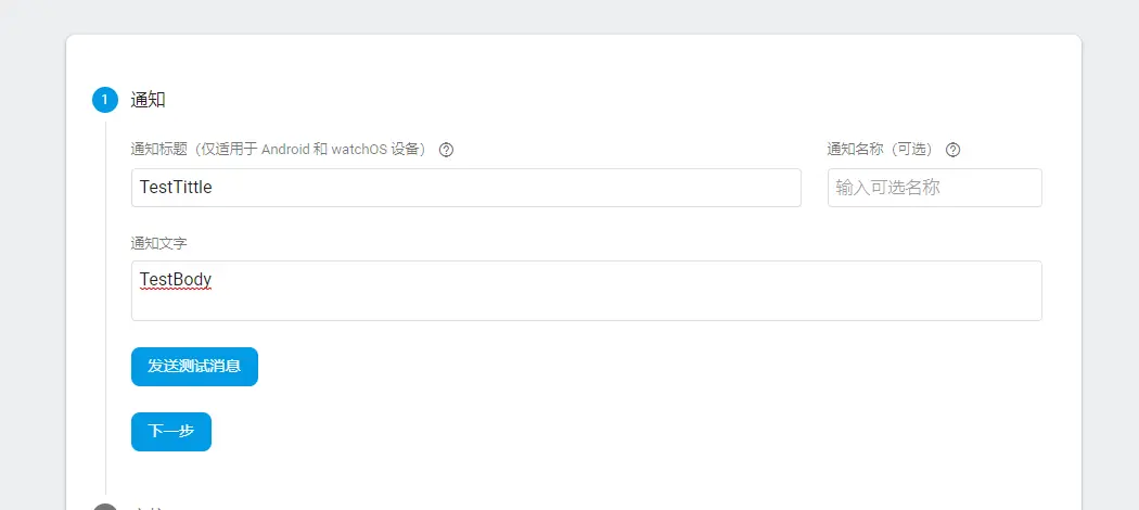 点击测试按钮,在Android设备上即可接收到推送消息