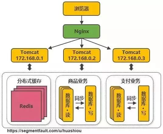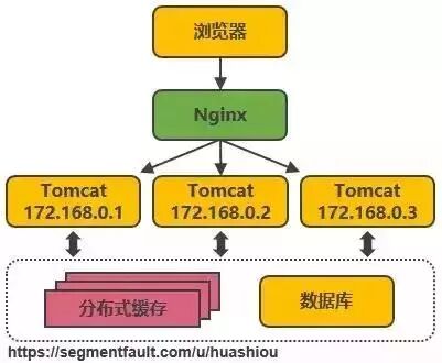 此处需要注意的是,上图中从Nginx层到Tomcat层这样画并不代表全部Nginx都转发请求到全部的Tomcat,在实际使用时,可能会是几个Nginx下面接一部分的Tomcat,这些Nginx之间通过keepalived实现高可用,其他的Nginx接另外的Tomcat,这样可接入的Tomcat数量就能成倍的增加。