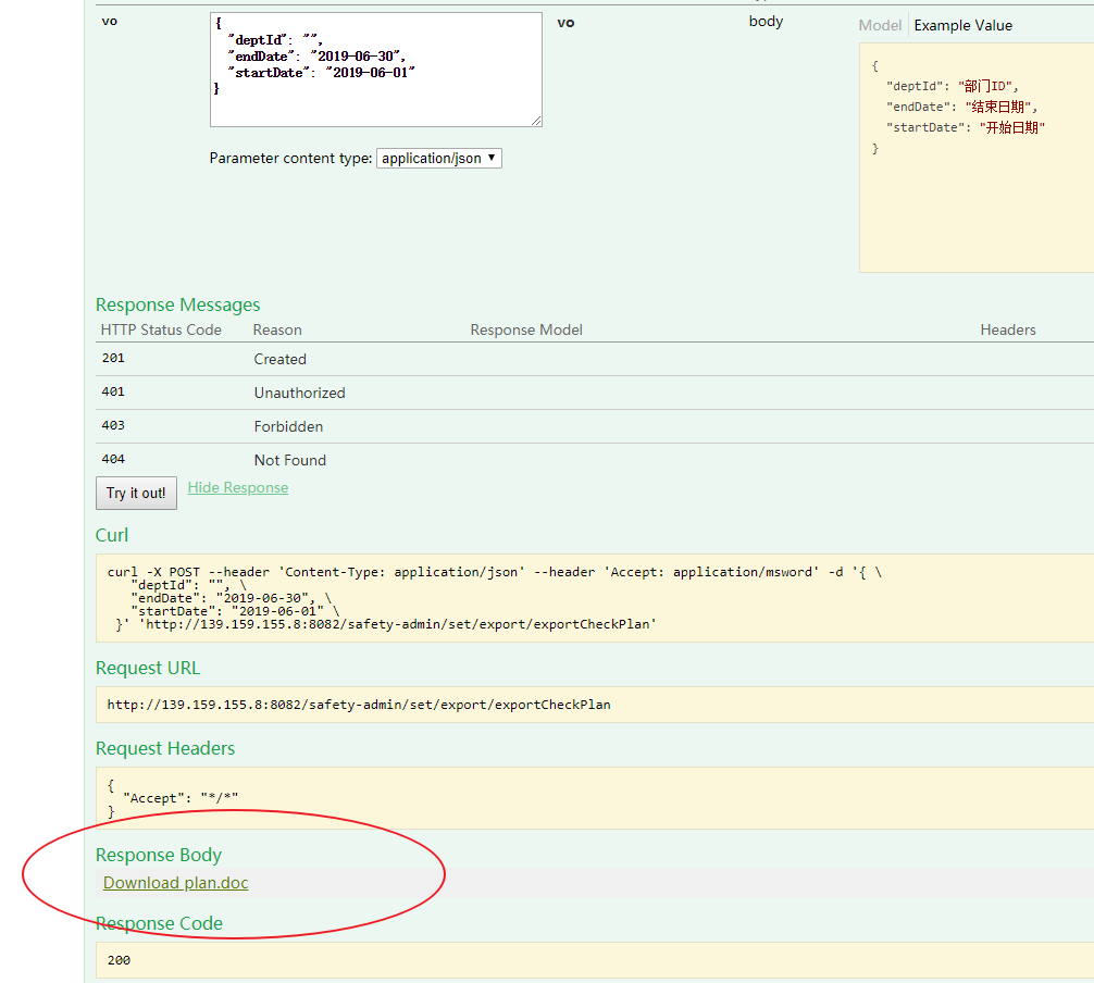 在swagger里测试,点击导出返回的是这张图