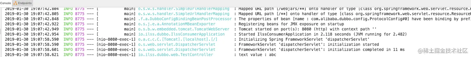- 游览器访问http://localhost:8080/test?text=abc 看到如下页面和log即完成
