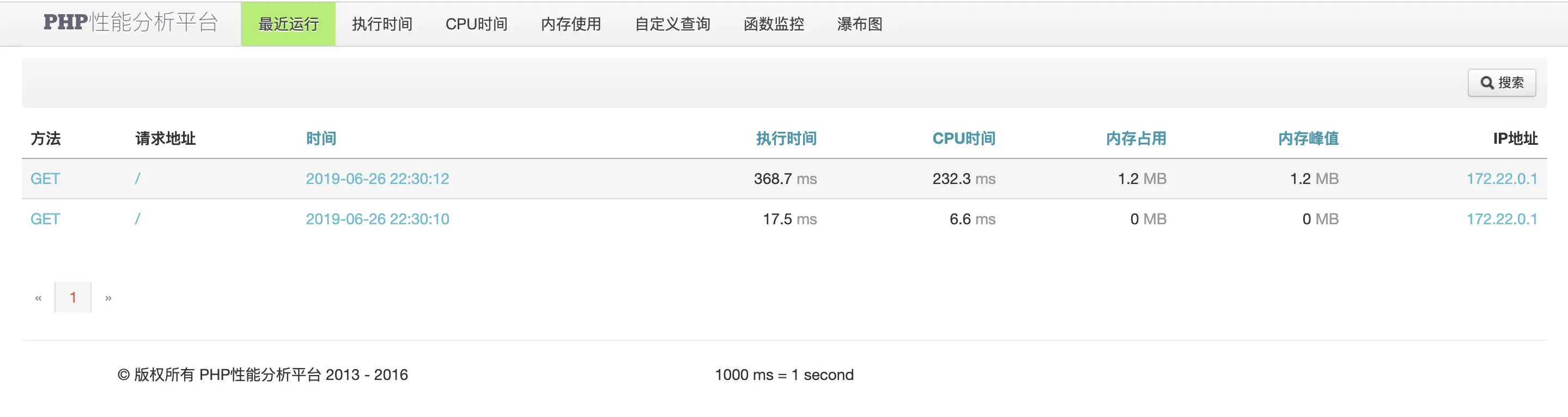 浏览器访问 http://localhost,再访问 xhgui.test,此时已经有了内容,愉快的查看项目的性能追踪及分析吧