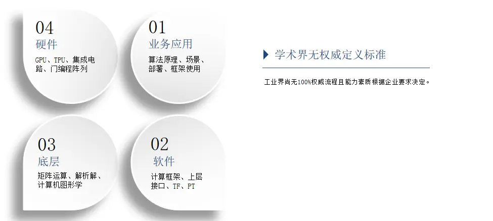 AI或其他行业想转行AI的童鞋,对于人工智能的现状很不了解且不知如何入门。其实目前AI在学术界是没有权威的定位标准的,但工业界可以大致分为以下四大分类:硬件(