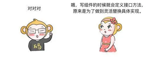 栗子:以电脑为例,无论主板、CPU、内存、硬件都是在针对接口设计的,如果出现某个局部的配件坏了就只要替换对应的配件就行了。如果针对实现来设计,那么电脑显示屏坏了就需要把主机也一并换掉。