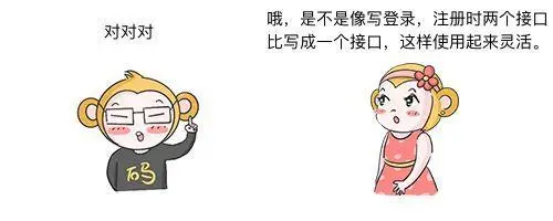 栗子:假设要设计操控机器人的接口,不能只有行动和停止的接口,行动可以拆分成前进,后退,转向,跳跃,等等,接口拆分可以使组合更多。