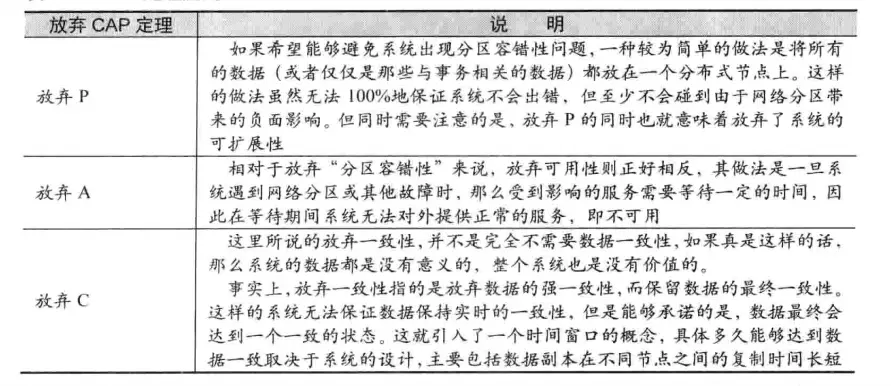 分区容错性(P):分布式系统在遇到任何网络分区故障的时候,仍然需要能够保证对外提供满足一致性和可用性的服务,除非是整个网络环境发生故障。