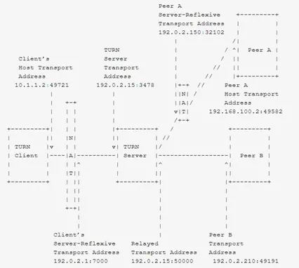 TURN和其他中继协议的不同之处在于,它允许客户端使用同一个中继地址(relay address)与多个不同的peer进行通信。如图二所示。