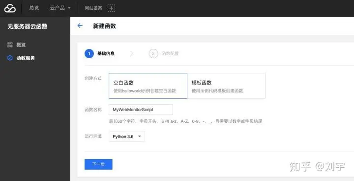 首先,我们打开腾讯云登陆并选择无服务器云函数业务,创建我们的监控脚本: