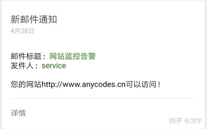 sendEmail("您的网站%s可以访问!" % (url), "service@52exe.cn")点击测试查看结果: