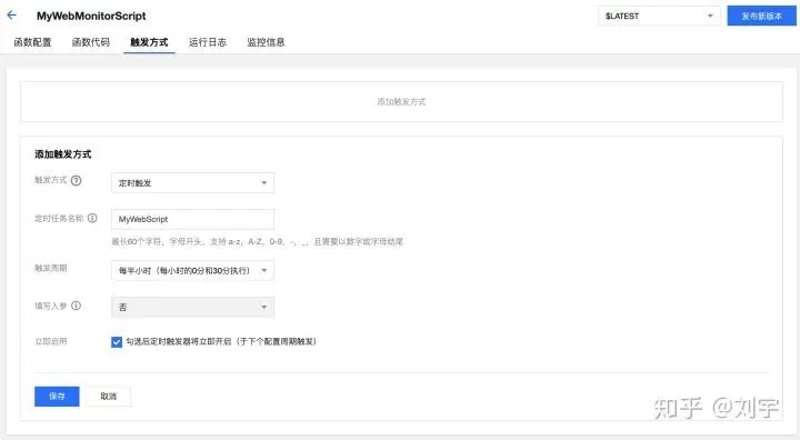 在触发方式里面增加定时触发,并且保存即可,同时点击右上角的发布新版本: