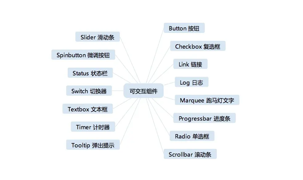 这一类角色跟我们桌面开发中的控件类似,它表示一个可交互的组件,它们有: