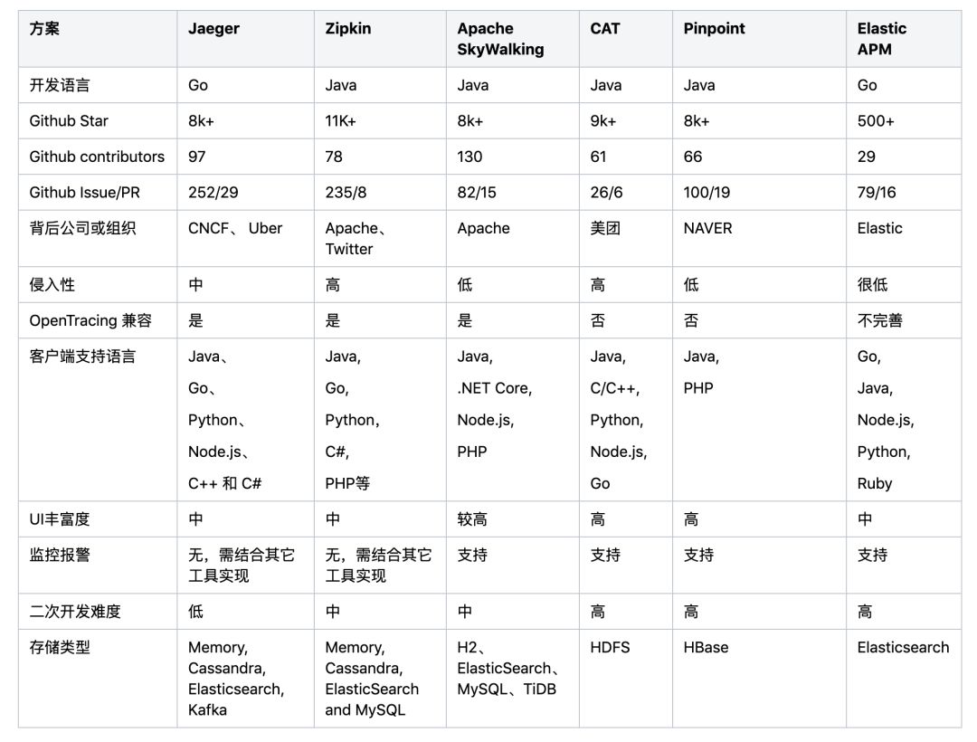 目前比较主流的Tracing开源方案有Jaeger、Zipkin、Apache SkyWalking、CAT、Pinpoint、Elastic APM 等,这些项目源代码现在都托管在Github上。