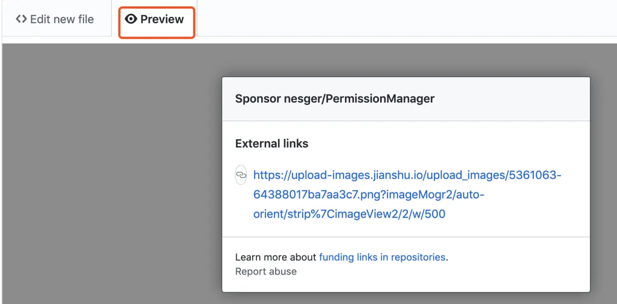 切换到 Preview 可以看到点击 sponsor 按钮后的效果: