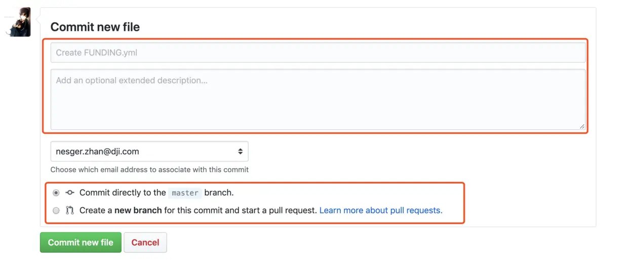 会看到自动创建了一个 FUNDING.yml 文件,并且这个文件内容还有一个模板。