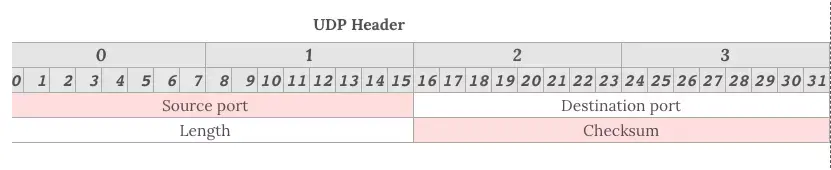- 两个十六位的端口号,分别为源端口(可选字段)和目标端口