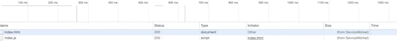 当我们重新刷新页面可以发现我们缓存的数据是从 Service Worker 中读取的