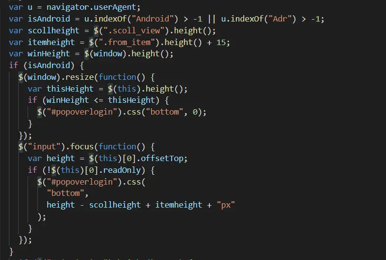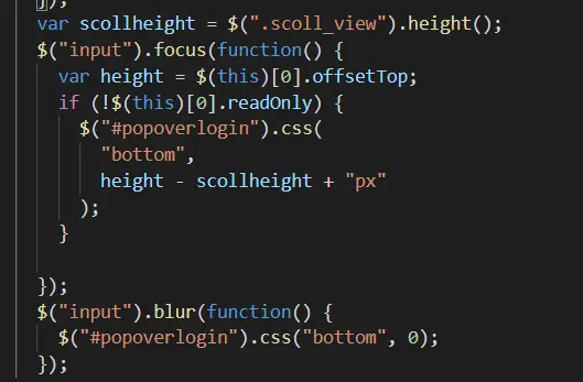 思考问题:因为表单列表是fixed定位的,会被顶上去很正常;由于是fixed定位,bottom的值可以为负(解决问题主要东西);这样的话我就可以当输入框focus时,就获取当前输入框的offsetTop值,再获取弹出层的height,设置弹出层bottom=offsetTop-height;(heiight为弹出层高度,这个值必定是负值)