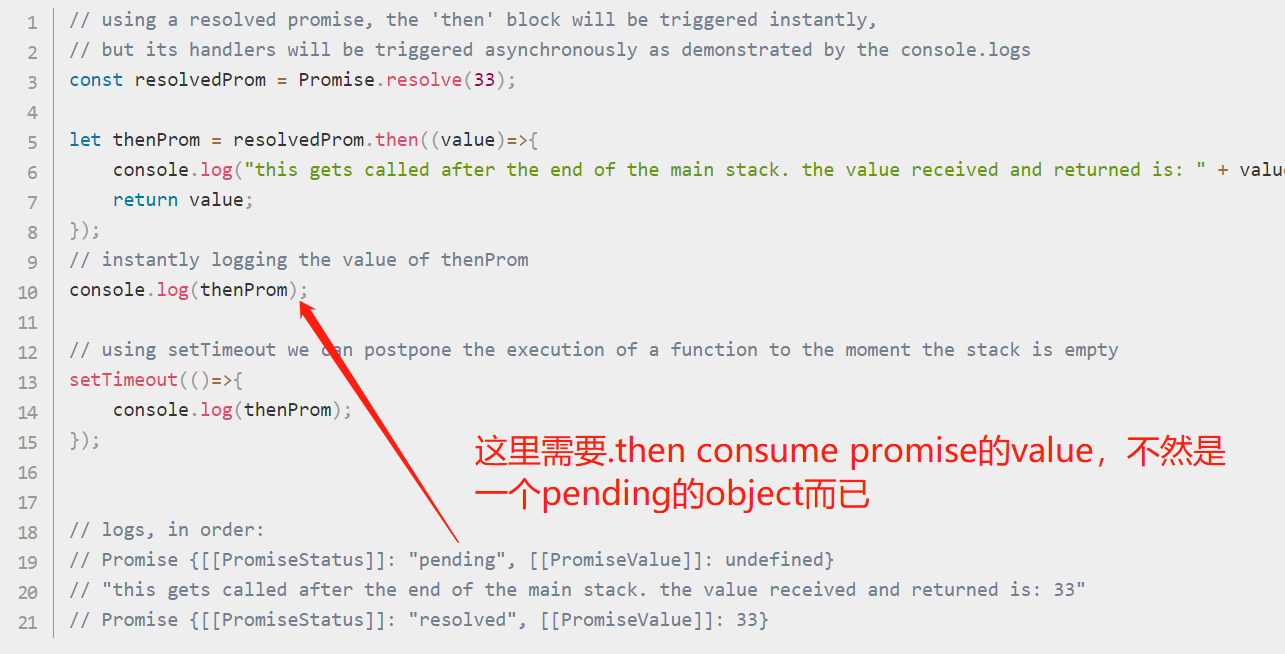 - Promise的状态在microtask完成后才能改变,如果要获取改变后的值,则需要then,不然promise只是一个带状态的object