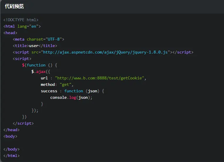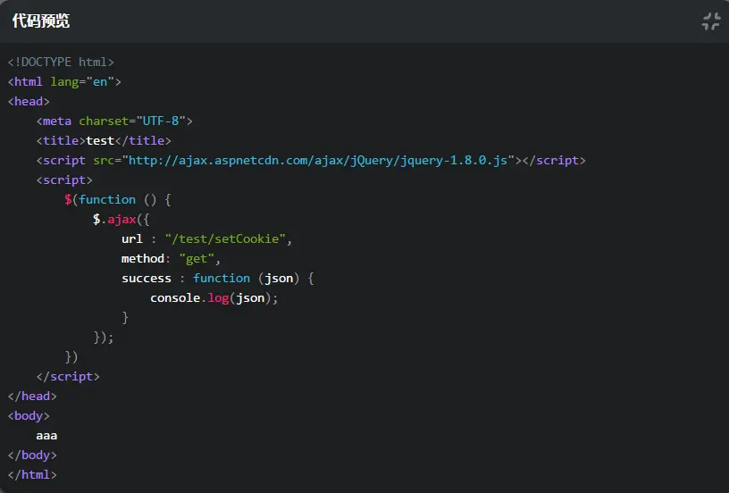 我们可以看到服务器成功设置了Cookie。然后我们再看看同域下,异步请求能不能带上Cookie,代码如下: