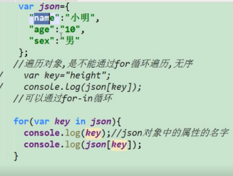 遍历对象使用 for (var key in json)