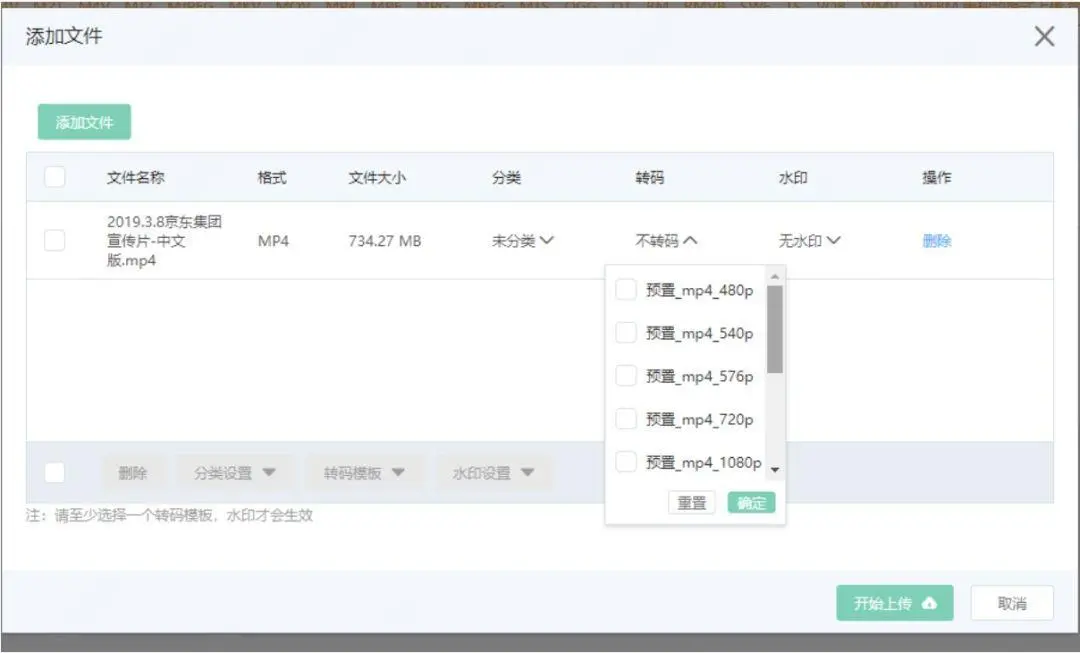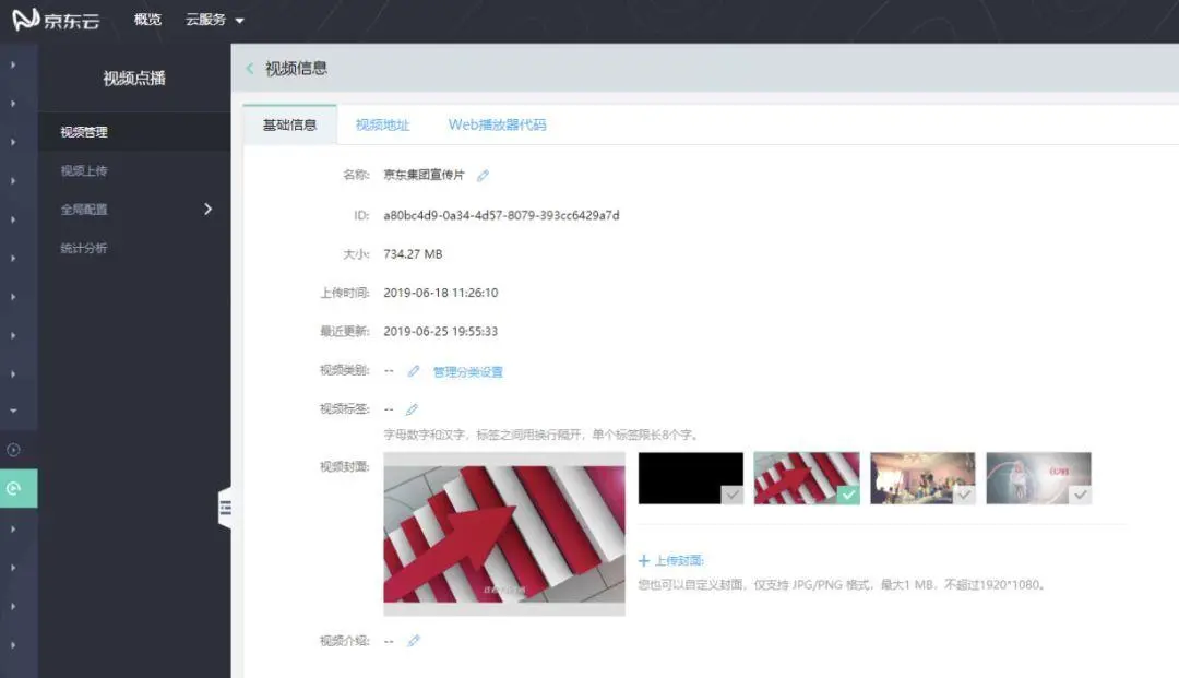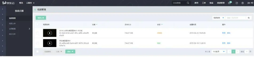 上传完毕后,可以在视频管理页面,对视频文件进行管理: