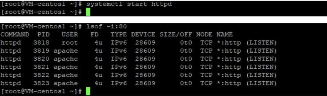 1# systemctl start httpd2 # lsof -i:80 --查看httpd服务是否启动