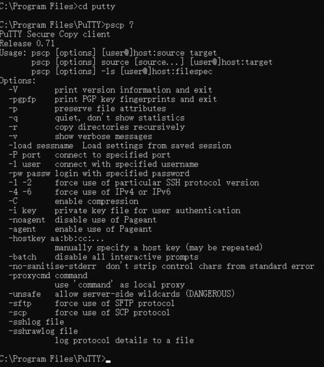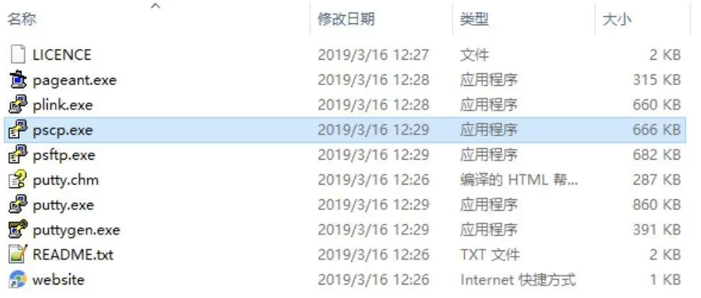 我们使用putty官方提供的PSCP来上传文件。打开putty安装目录,查看是否有PSCP: