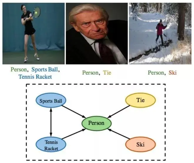 稍微展开讲讲高阶策略:由于现实世界中很多物体通常会同时出现,因此对标签之间的相关性进行建模就成了多标签图像识别的关键,如下图所示: