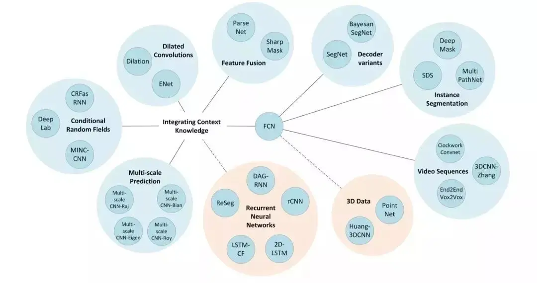 实例分割:更注重「个体之间的区分」,实例分割这个问题近几年的发展在很大程度上是由 COCO 数据集和比赛推动的。从 MNC,FCIS 到PANet,都是在 COCO instance segmentation track 上拿第一名的方法。主要模型有FCIS、DeepMask、MaskR-CNN 、Hybrid Task Cascade(HTC)、PANet 等网络。
