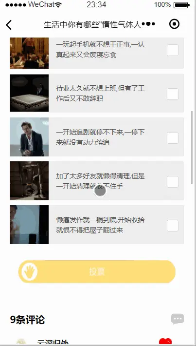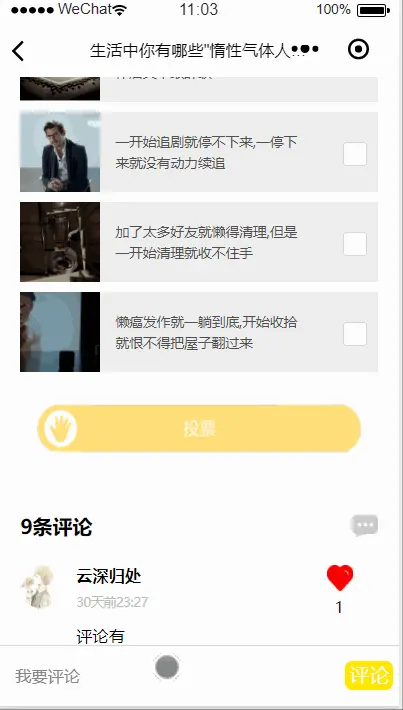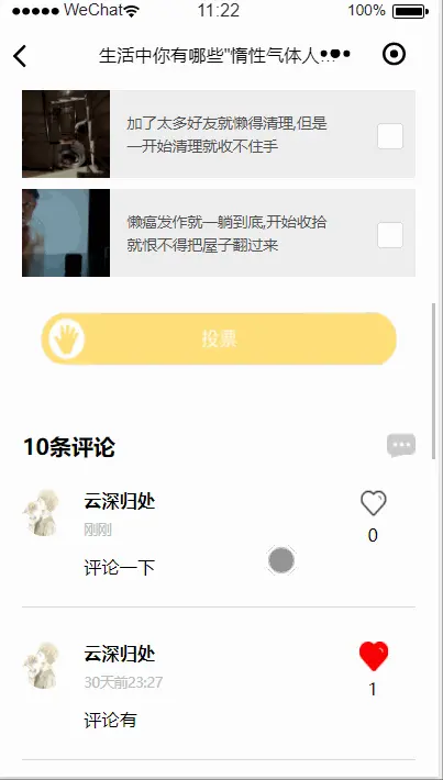每个用户不仅可以选择投票话题,也可以选择发表想法的话题,可以根据标题发表自己的想法