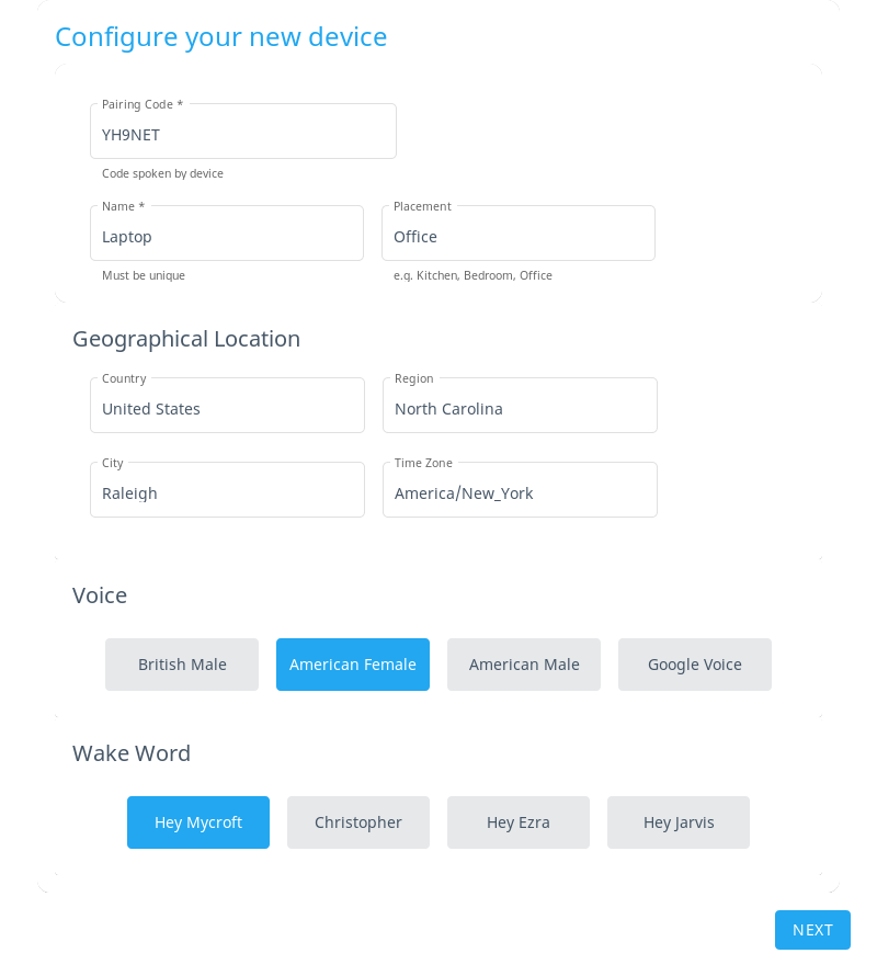 创建帐户后,可以在 account.mycroft.ai/devices 中添加新设备。添加新设备需要配对码,你的设备会在所有服务启动后告诉你。