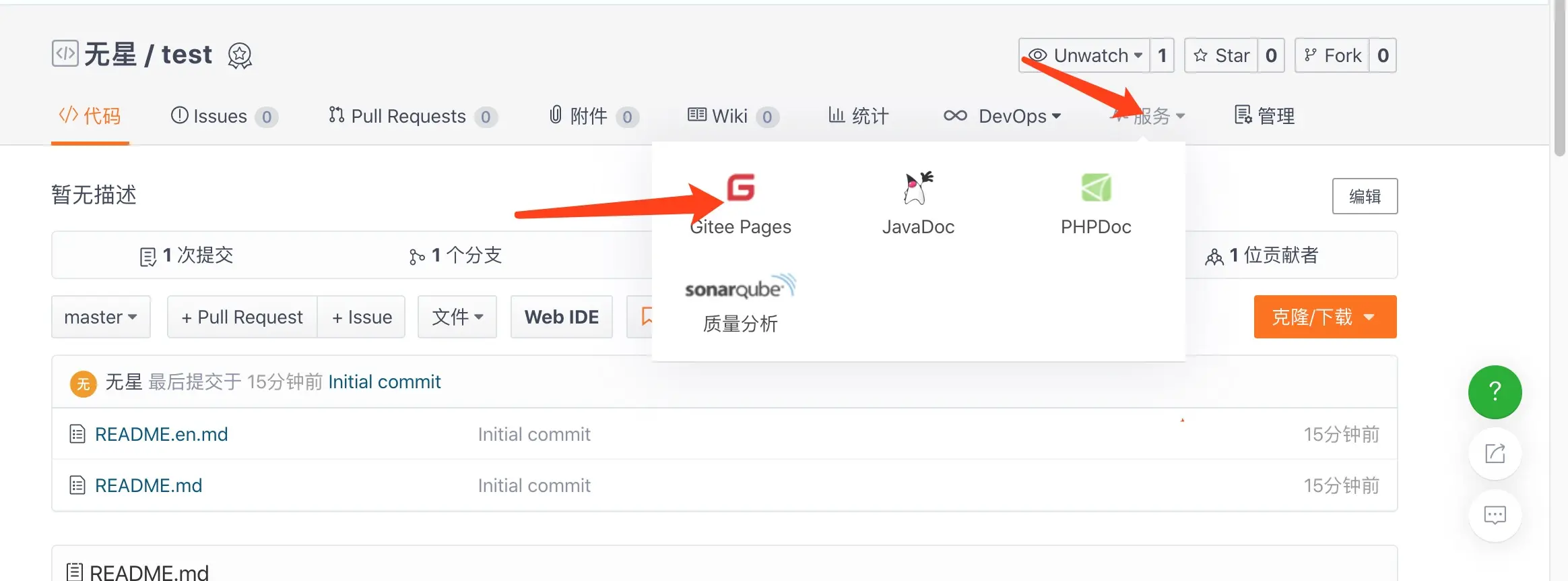 创建完毕以后,提交文件到码云