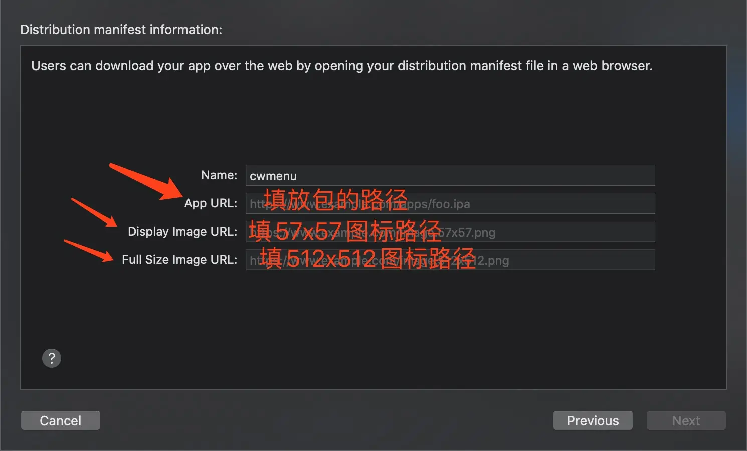 我要填写的三个路径分别为:xxx.ipa为打包出来的ipa文件名