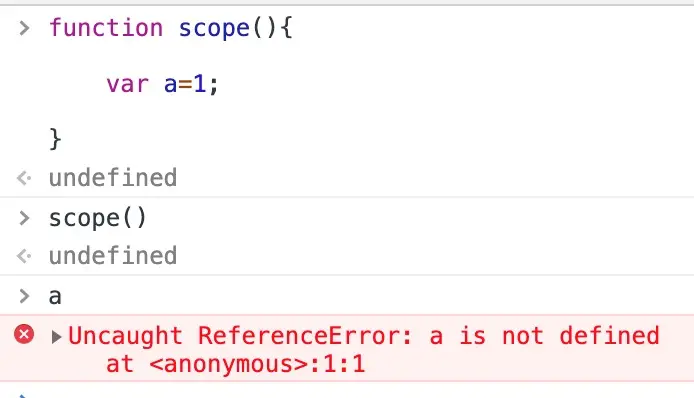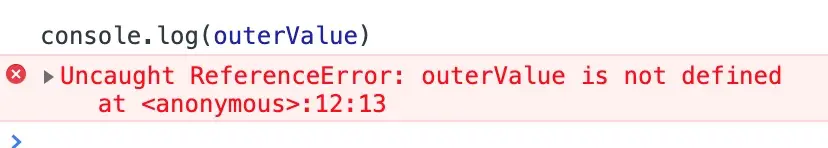 我们在全局尝试获取到函数里面的变量程序的解析立马会报错