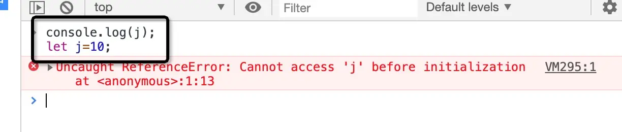 我们照样用这样的顺序去写代码但是报错了,错误的原因翻译过来是“无法获取到J,请先初始化”