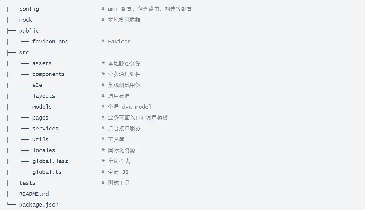 以下为antdesignpro的目录结构图: