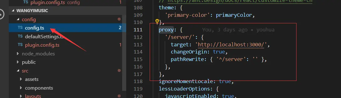 AntDesignPro的代理放在里config里面: