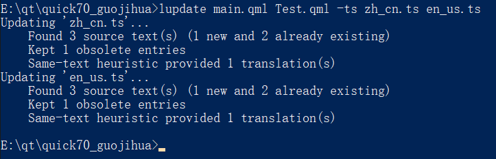 2.进入使用lubpdate命令对项目中需要国际化的qml文件进行编译,编译后会产生ts格式的文件