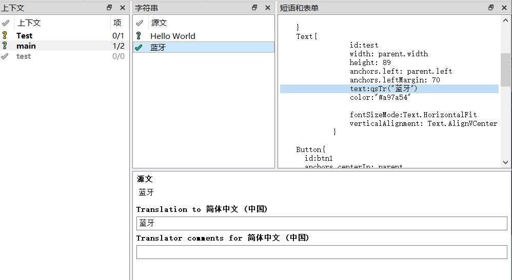 3.使用qt安装路径中的linguist.exe软件打开生成的ts格式文件