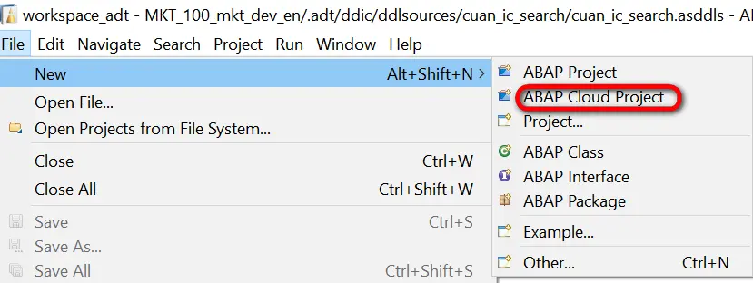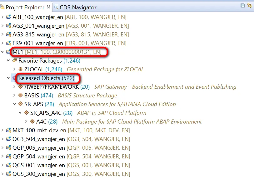 Finish点了之后,在ABAP Development Tools左侧的项目列表里就能看见创建好的ABAP Cloud项目了,接下来在这个项目里编写ABAP代码进行开发的方式,和我们用ADT连接On-Premises系统基本一致。大家可以看到下图创建好的高亮的ABAP Cloud项目(系统ID为ME1), 和其他On-Premises上的ABAP项目外观上没有区别。