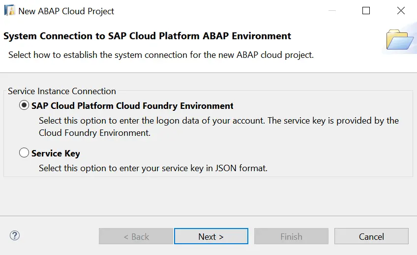 Service Instance Connection,选择SAP Cloud Platform CloudFoundry environment: