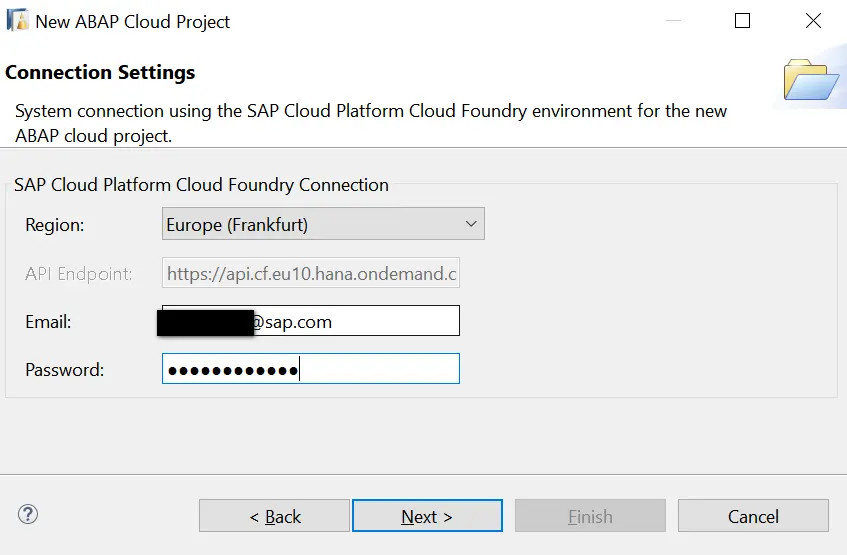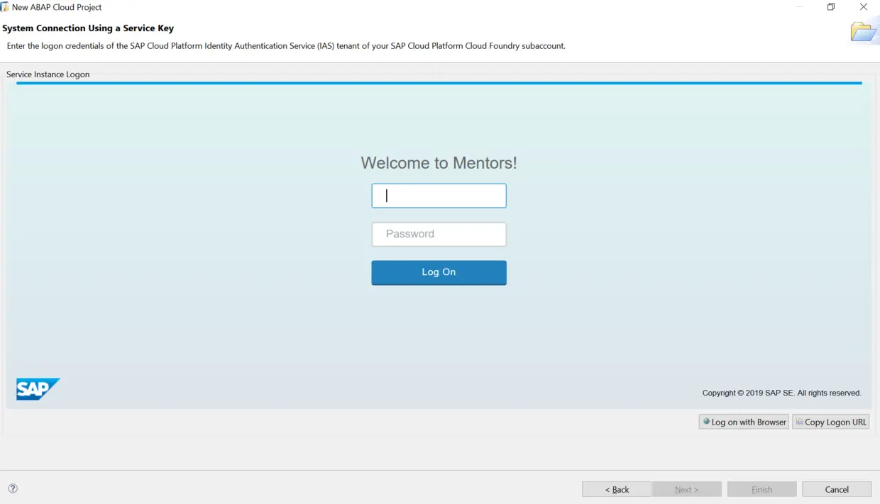 点Next,在ABAP Development Tools里会看到一个嵌入的登录窗口: