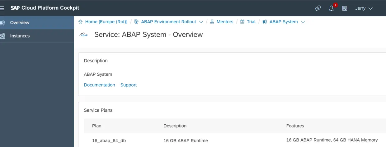 这个Global Account所属的space下面我创建了一个ABAP系统实例,ID为ME1: