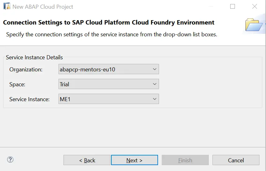 再回到ABAP Development Tools, 在项目创建向导里使用Cockpit里维护的上述属性: